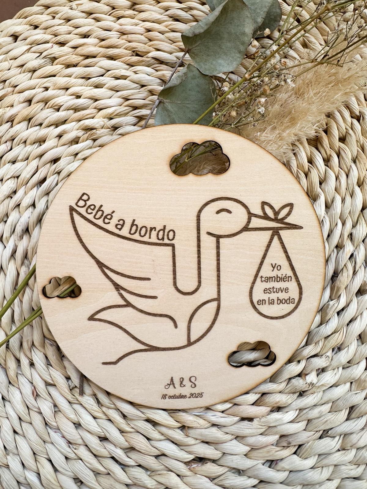 Maxi imán de madera perfecto para regalar en tu boda a esos futuros papis, porque sí, el bebé también estuvo en la boda!