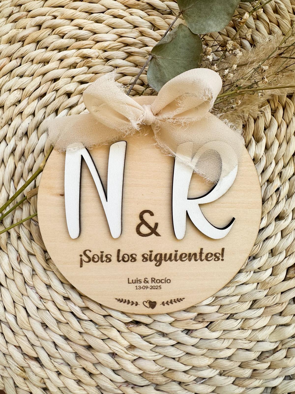 En esta opción las iniciales son en madera blanca y añadimos el lazo dándole un toque más especial.