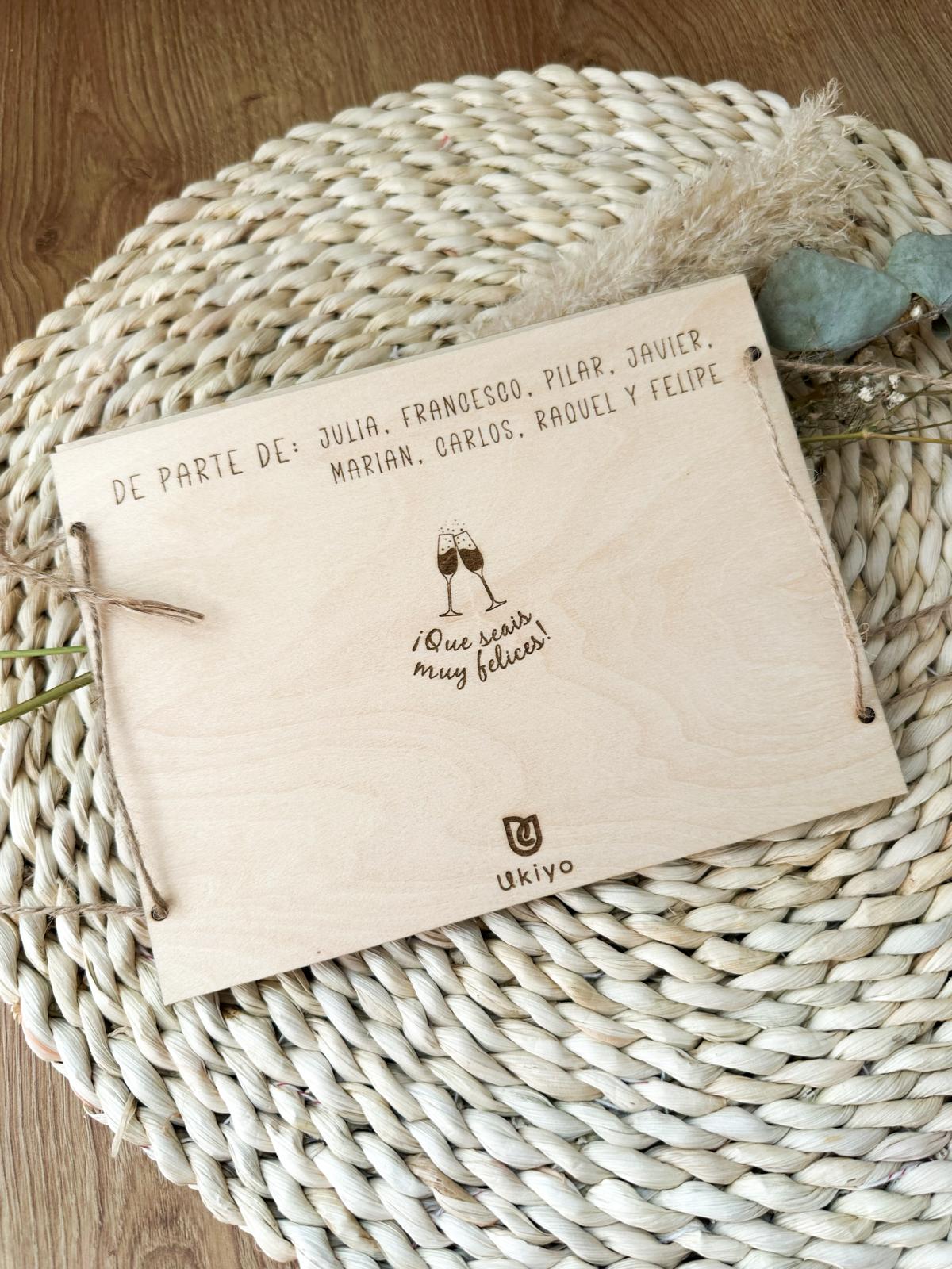 Contiene un sobre interior adherido a la parte trasera.